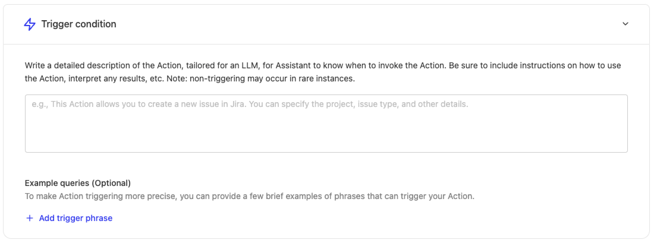 Configure when your action should be triggered in Glean Chat.